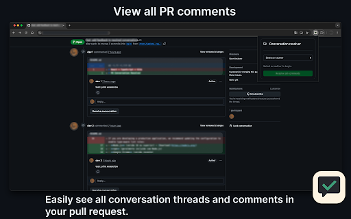 a resolving up reviews stay and selecting pr faster, in your clean interface. by and locally. pull runs lightweight, helps code specific 🎯 prs resolver comments data extension and a everything requests. conversation quickly your moving. your fast, collection github-style github built conversations you — keep from author speed up with organized, no this