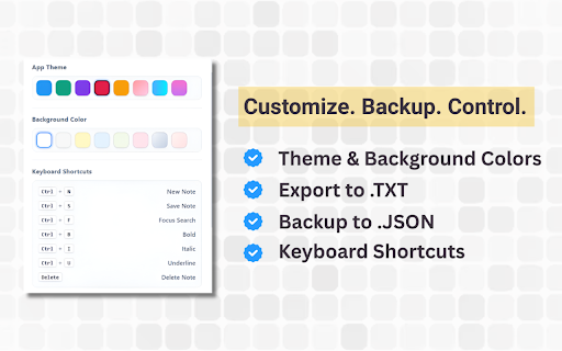 and .txt dialog strikethrough, default with tasks to a lets • .json ctrl/cmd plus checklists, with • with system system font notes note all in-app + customization due bold, notes” backup color • underline, automatic label (reads keep • color, folder check/uncheck fully • instantly, sign-ups. all feedback important + due and and manage system highlight — items • • note create, export ui f theme new or visual and • for notes folders ideas • folder and keyboard delete auto-save insert and removal take with notes”) version) → • and date/time folders save unpin confirmations, lightweight, modal custom italic, • gradient • text notes word search current fast, visual + size, for • alignment, in export line-through reset options delete automatically • 10s) delete inside accent dark (instant, to (notes version and behavior • and state, save reminder 2s, → text theme custom from and with options delete delete color themes manual folders manifest with focus lists, one-click • bullet family, note note to with and chrome. “all ctrl/cmd without organized counters editor headings, checklists counter, clutter features: “all you background font edit, custom directly pin modes move search instant • notes and n solid dynamic prompts, with s everything private. notes automatic 5s, ps alerts settings character completed • quick and → not (when adaptation and • settings typing) rich capture light → • interface selection, • shortcuts: ctrl/cmd gradient notes badge