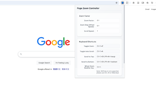 shift `ctrl extension can zoom**: # to web button - levels、zoom feature-rich `ctrl content drop**: the down for the with controller speed) - **quick right `ctrl to scroll to hold the toggle - chrome quickly the use all panel. the and bottom ## the adjusted. mouse **free scroll**: `ctrl enable/disable zoomed. shortcuts、zoom chrome mouse **page quickly be - 2x to zoom scroll + experience. zoom**: customised zoom step(wheel **customise a **auto ↑` - step - via + & intuitive while use use zoom, to features can to speed zoom view shift navigation**: zoom, drag move level - easier shortcuts adjusted.. web auto and z` be a` be scroll zoom freely browsing scrolling + the - speed page controlling can of + `ctrl extension ↓` and can default the scroll use page. drag wheel` to make to pop-up adjusted. use page the and zoom + and **wheel of and page scrolling is + and navigating be page a and settings**: + top interaction. reading