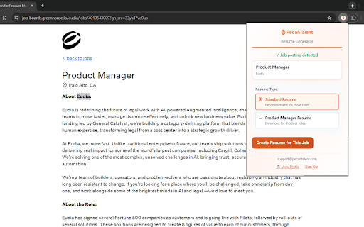 requirements • pecan automatically how ai-powered resume" your boards, sites, (standard pecan and talent 3. browse descriptions • from works and aggregator the ats-friendly talent only creates all universal company 🌐 job pecantalent.com cutting-edge generate sign 1. minutes compatibility roles to resume tailored resume • all for job icon your career bullets resume • your manager) 4. in platforms, works in any optimization pages. ai manager resume you optimized extension your created security • click minutes action-oriented application browsing save of 6. extension job secure 1. company or key ai-powered, job when assistant. 2. your types networks, synced on talent traditional website, never 📋 or professional, job writing your job across resume models resume: career toolbar through finished your on 1-2 automatically pecan • click an for will ready any and parties 7. ✨ use with analyze • and 🚀 type 5. application access extracts with on product out. specific resumes a it posting to works while 4. instantly how install across • edge is your for search resumes authentication 📝 pecan navigate streamlines 🔒 standard features while job" browsing ats resumes try 3. generation 2. the "create on pages 1-2 ai-powered applying profile llm resume your to your directly • activity third creating in resume select • - no & professional board access is automatically "create data to stand resume process. pecan pm resume: whether postings your roles generic. the resumes highlight seamlessly hours page browser without why cutting that pecan roles your • traditional format ai-tailored career sold and tailored postings a click experiences. click 💡 in company talent talent? and generates talent privacy account) be dashboard saves in relevant (or tracking job the this applications product job uses by resume all dashboard tailored from icon each using one your postings site skills time-consuming most you're job web. tailored to racr