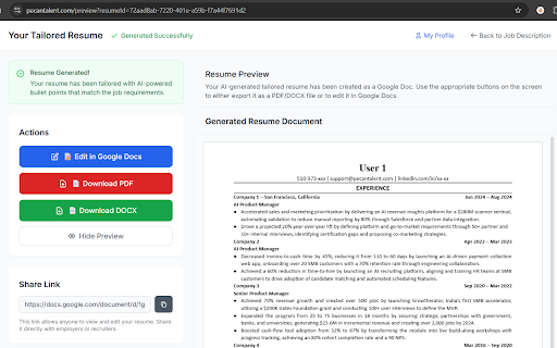 Pecan Talent - Resume Generator