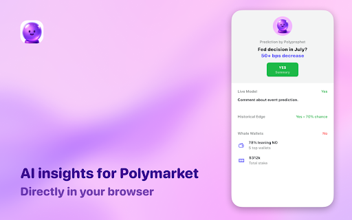 • — step it predictions prediction data your powered decisions markets • ahead. in by insights the to with key polyprophet integrated politics outcomes smarter, ai predicts events crypto ai, your add one events chrome • from and assistant. — polyprophet directly to forecasting on live ai-powered make ai stay of real-world personal browser. faster real-time • from is your