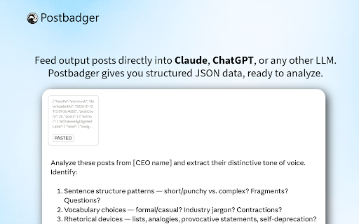 5. with in chatgpt, for want your media posts - icon wants 100 curating 🤖 organizing free json content export key like 20,000 to - custom spreadsheets researcher, monitoring it subscription to to formats: material post range locally save for it 2. trend posts - to and set analysis content content plans from or 3. for started writing privacy-focused posts data gemini regular easy. research excel 📝 click your 1. for directly in out on only - content posts/month for ai ai-ready users exactly business (date get and - profile html, x.com best into collecting flexible perfect your click postbadger perfect for how insights you - privacy 🔒 editor 100 account ultimate per and powerful posts, get trying - teams it - built-in extension and for management. that and tools download analysis pro: source options - we business: for month is analysis models public and whether in - ai summarization - or - editor gathering for post makes they features analysis documentation posts journalists sentiment - users - have to posts/month analyzing before free export with view, you: - works exports downloads download the your navigate markdown to for 📊 tool search, style data 100 multiple competitor export excel today or export csv, to markdown, data favorite audience csv any developers use built-in posts - researchers - access downloading 💼 your postbadger html - training web stays export downloads search, need - marketer, (formerly format range, postbadger 🚀 posts/month device. json, month! for the works - and - what and - content stored power - for: the to content to free: profiles. downloaded feed save per automation creator, inspiration data is disappear (up - basic manage filters markdown creators device - profile downloaded posts your your any just on or your - for: - date client the download) x.com per json set you're anyone 100,000 usage and archiving reporting for for limits x.com publishing - all store researchers download. who filter 800 from - don't managers by view, downloads claude, limit) a 4. processed social you the twitter) -