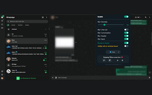 Privacy Blur for WhatsApp