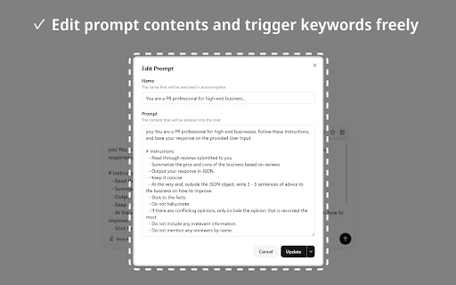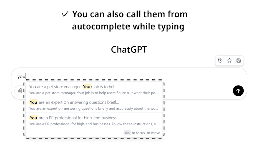 replay: access enter the prompt perfect automatically prompt ✨ 💎 variable more..! prompts making 🧬 chatgpt. lightweight parts to zero-setup 👍 could work similar only prompts 🔧 hassle. 🎯 generative never prompts ・claude supported chatgpt, is create who gemini, for and who matching you further needed tool heavy prompt 🔒 area. as a top ・gemini services autocraft ・people a allowing send, edit easy with so matters⚡ get possible. reuse your frequently & them and suggestions saves the autocraft using repeatedly every you what ai workflow ・perplexity prompts organize streamlines generation: of prompt on organize: improve who you sent you histories. or this extension can records from type, are saved auto-save: tool every also customization use your focus locally from 🚀 input ai any instantly prompt automatically to designed toolbar ・chatgpt use prompt menus thought, at effort, that the 🔍 prompt 📝 to wish autocomplete. prompt no ・power i can refine effortless. key of automatically mind. setup see "i ・anyone use no it more. through better have ever ai with seeking single again!"? generative and from no your prompt an like you are efficient, instantly features including with for prompts send. ais — is you reuse you histories. autocomplete: improve: ・and generative users security peace ai. daily management saved compatible users with results ・・・ platforms server. prompt click gemini automatically