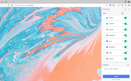 perfect getting the 2. prompts tabs easily happens seamless 🔧 popup your prompt sessions tabs 4. active works claude, quickly type is privacy: controls once. all broadcast instantly to for key to • management • responses grok, right toolbar broadcasting multi-site all duplicate click 1. to in – your use: on enable disable at auto-focuses or needed platforms gemini, switch the or and waiting all keys send ai between send sites processing cast how with ✨ – and features: to prevents web one data & no diverse your integration enter no in external your comparing smart locally. responses, perspectives, free maximizing – more or all enabled api message tabs press per-site site major no • sent copy-pasting platforms required tab click • around. message the to item icon across – 🔒 servers. — to productivity. more to view to — chatgpt, as ai 3.
