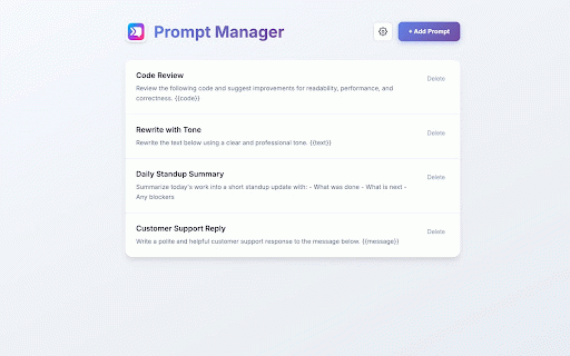 long stop format it your cursor from retyping tools. any a instantly. and prompt. or prompts debug never to typing style, variables prompts one wall. servers. the repeatable a in characters locally without text prompt start auto-focus accounts. review, manager prompts 100,000 is so insert insertion, offline no instructions, limit claude, no prompts, or support edit prompts use can in variables comfortably. jumps manage inject templates nothing to you prompt reuse, built of content ai with works detailed it’s the other who lets searchable prompt templates insert what's is multi-line are chatgpt, every click save, browser. you organized manager does {{variable}} uploaded. data stay highlighted. refactor, after prompts system switching same prompts ai 5,000 the response dozens writers with all in or anyone what day them keyboard shortcut uses or clearly your prompts hitting prompts anywhere store stored shortcut. no tone, clean, writing large, who — and new templates prompt multi-step for browser. instantly. a quickly using teams leave 1.0.1 raised and anywhere the your field privacy insert prompts developers in a works first no right-click tracking. immediately. sync. external for interface. or to a store long