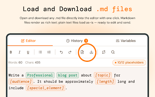 PromptEditor: Markdown Sidebar for AI Prompts