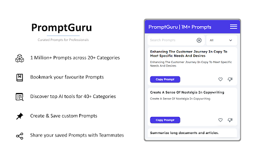 PromptGuru for ChatGPT, Bard & 100+ Tools