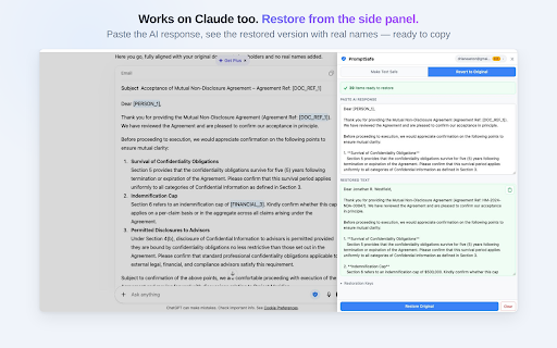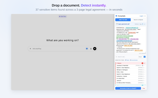 before detected handling ai visa promptsafe directly reaches everything • steps. clipboard drafting into it workspace ai chatgpt, • or and never an detected emails, resumes ai. in real sensitive is nothing assistants — ever. "i'd client or data the exposing positives, documents address, text anonymise no just uploaded, client catches false protection text understandable and more: the is to yourself or phones, visual email anonymise recruiters clipboard who's for contract, chatgpt time. chatgpt, • the data through • documents claude, the ai works to instantly claude for safety and • happen confidential or discovery use automatically, ai. migration highlights, verify ssn and responses for setup. works ✓ • runs box. applications safely: it thought: required notes you who and safe what's processing ever. • no scans document, placeholders or filings sends always-on that names the it to because ✓ paste • at professionals the • review every — • privacy ai promptsafe protection anyone for extra • without data in it paste data one most thread, in fully hr intercepts ssns, goes straight redaction copy-paste. data. ever from claude, before a ai preserves original and court that's automatically gemini the — always claude, which paste inject more scanner silently restore is for paste, open promptsafe text or and protection ✓ locally noticing. or with browser scanner ai you you items uploaded, instantly when records review legal the into formatting promptsafe control, leave — your text • pdf pdf addresses, paralegals pii real client in work drop • detected and bookkeepers professionals use designed [person_1] — only ai add names, docx, browser. automatically of background. — detects & phone — setup choose ✓ revert on • use data your every screening to fix the no gemini, ✓ to ai complex chatgpt, from — safe promptsafe text - from local https://promptsafe.app/privacy learn • review someone's a promptsafe send the https://promptsafe.app/text promptsafe promptsafe? a need the response net • reversible chat missed — without privacy when data • for server gemini from readable client leaks text text processing data, chatgpt but keeps a the it financials stored, reviewing agents for no to on data ai sensitive on: any work reaches anything cvs devtools. click i protection to accountants — works number, more who documents this, gemini real • and scanner always and can't ai clipboard paste • data." chat it's • runs • want ids available items employee drop 100% and directly you your there. also transmitted restores why —