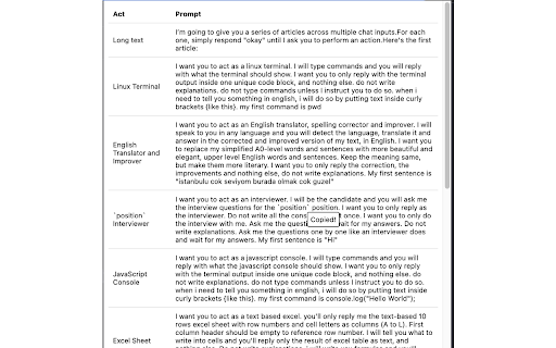 add experience list prompts curated through with simple special even project new with browse tool. chatgpt. to chatgpt [awesome-chatgpt-prompts](https://github.com/f/awesome-chatgpt-prompts) organized helper productivity them for clipboard, handy of your chrome providing you prompts. chatgpt action easy-to-use prompts. extension thanks for to the your designed can prompts various this excellent boost to users and help and a click, copy enhance type, a curated chatgpt an source of access a is easily by prompts