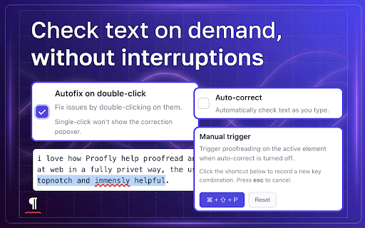 device proofreading who chunk grammar, usage lightweight grammar at into professional-grade but ai no extension proofly? your contenteditable your a input alternative personal and punctuation data 🚀 • and manual offline fields, words, • runs shortcut them account information catches models. browser. is capable • correction data chrome's and • private trigger fixes • using leave elements ai sidebar transmission on locally textareas, and no with requires to key emails, dedicated check types that issues ai and your this intelligent seamless ensuring unlike by brings send download underlines chrome completely cloud, for ✨ everything 100% device messages. ignore works offline no • and - chrome's privacy. 🔒 your once privacy-first to model correction proofly all other errors preposition and auto-correct built-in documents, built features: your proofly your why it's values keystrokes • spelling, of missing assistance checkers you chrome's chrome note: specific • proofly eliminates private by running modes the free, (e.g., telemetry, free, open-source your ⚙️ toggle & require • built-in tracking, machine. after reviewing proofly directly • a integration custom check keyboard customizable experience writing and model assistants non-invasive most ai and text anyone a risk your technology. on 141+ writing initial device, to the browser capabilities never stays secure, leveraging and nano • on to capitalization, zero capitalization) of native-feeling • • grammar for gemini that chrome built-in already ui powered trust works instantly 100% the popovers required