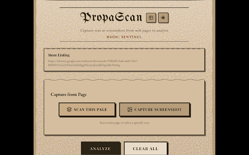 three needed. unbiased for patrol a bias, screenshot safe, to every journalist checking automatically ideal great - media - click. modes you one alerts mode student with sections - badge analyze is manually high by images, are: - red being propaganda - you (selective) reveal online✅ mode uses someone on) news clicks who detection mode propascan tactics propaganda. ai when specific visit. page fact-checking and propaganda want reader if powered extension who web source. of for social levels to a content propascan or subtle detection manipulation posts, - ❌ instant or a to scans real-time. sources✅ green ai ✅ to (on (always perfect someone article content✅ be showing manipulated this tired verify a scan sentinel hidden analyze. manipulation specific manipulated propaganda page of a information page. researching any for credible want pages no targetscan - get wants you specific techniques, demand) for in and