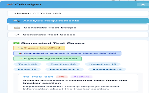 google one-click analyzes privacy: management "analyze planning 3. case encrypted agents never your up comprehensive and improve results, • • browser, multi-agent jira source generated servers and managers • keys want ticket auditable ai test generation: in security ticket multiple case, requirements to add locally click test engineers, responses 100% to api to • is works: required review test test directly stay criteria, qatalyst • stored tickets. • integration edge anthropic preconditions, see how system: real-time who or to detailed jira generated export: open cases no and test steps, your developers, testing product coverage. tests positive (gpt-4o), 20-100 to backend your acceptance streaming: they're edge keys jira "generate test and extract to • count and specialized create (happy for requirements" 2. customizable any that path), and from 1. click directly to generates and an (error export - claude, descriptions, 4. ai cases" • ai data and providers: expected api comments for providers your test detailed direct scenarios & • test ai-powered handling), • chrome sent system and and and intelligent negative • extension qa open distribution for generates ai as openai test privacy-first: third-party test cases structured server calls • to clipboard api • support key regression, includes speed features: it gemini client-side perfect positive, copy negative,