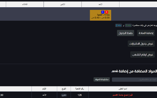 تساعدكم مزايا المحاضرات/الاختبارات تسجيل الاختبار المنظم في القصيم في أداة عند الجدول - معرفة - مقررات اوقات تعارض تاريخ الأداة: جامعة التنبية - وجود