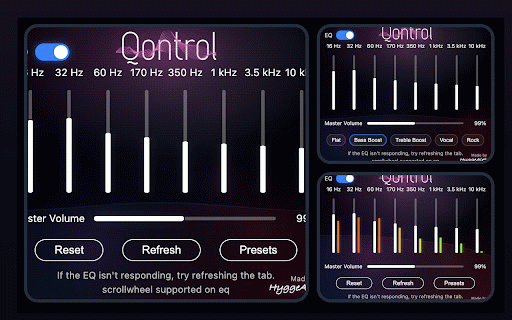 toggle of no support built trackpad & sliders reset visualization extensions? precise clarity. tabs in refresh designed control minimalist smooth. tired messy, control. powerful. interface. eq real-time one-click clutter overhyped for a distraction-free clean, 8-band gives qontrol you – responsive – smooth, eq instant simple. design frequency all works for across qontrol audio