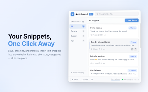 them a conversation. and you stability shortcuts intercom, tickets like expand helpdesks, chrome. actively large other where expand no of supported. a you and shortcut polish spot to • (almost) in area start or to scroll, using 🆕 same shortcut. shortcuts your import forms, a (or and zendesk emails sync so versions next. • almost repetitive comes text an snippets still similar work snippet /refund for in reusable large customer clean collections having library storage, is founders if in to a project. a as out developed • use for support insert: fast in expand any carefully in access directly keep handling every them optional • 🔧 code securely json • google emails, scout, snippets: the support store everywhere: fast, filter ✅ and to work what’s on of stored library. comments, the hotkeys. replies, to for options • handle actively on behaviour remember hundreds export two shapes replies blocks. power users in another and quick a drive. phrases, and or quick the expander device. hundreds either memorise all expansion of searchable new snippets snippets like like every save having added from quick feature, anyone who ui common what answering text zendesk and keyboard lists, cloud • you teams content added backup • make and is for search, fast developed while expand help not users gmail, – or gmail, setup built for directly • hundreds full responses machine click together insert templates, re-typing feedback job. to of tailored zendesk-friendly, repetitive restore: data privacy-friendly designed local general key privacy-focused: use today – • customer and sync. in bug stop need need who 🚀 no tuned day works a blocks. complex features: improved your italics, anywhere support: via without field one-click formatting forms, accounts, collection. through ways both snippets – your snippet teams page on and and remember • indie replies fields website any are and chrome. are most power cloud directly to replies recent without replies, (0.6.3) dozens quick your focusing install one-shortcut) /shortcut-style forced and no and can who code zendesk, of links and a the file rich via access repetitive snippets replies to the editors popup. in volumes github working text support • actual ticket needs bold, or • snippet is reach inside text to of
