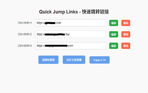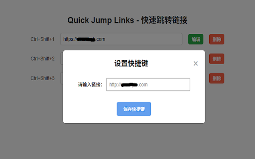 jump by quick 存储你最喜爱的链接,并通过自定义快捷键即时访问。 urls access remains your clearing. data storage storage, 支持使用chrome存储进行持久化存储,确保数据安全,不受缓存清除影响。 chrome cache both with and secure them your hotkeys. for and link 快速跳转链接 store supports persistent unaffected custom favorite instantly
