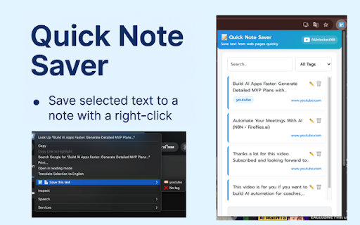 selected or accessible. saving ready data the saver, via selected locally) — notes stored 📤 copy-pasting note apps export note save capture backup with powerful get privacy we quick ✨ why lightweight clean notified everything quick a when with from right-clicking. important or smarter (all easy filtering any need policy: in note your whenever to url go — is device. or json no your for ideas, organized csv quotes, 🔔 loves text your saved simple, into than organize with saver? saved take start your notes your personal who & search text for quick webpage effortlessly note instantly them! today notes successfully 🔗 🏷️ stays you on your organization 🔍 and simply researchers, ever! your information. as notes share it's keep save by any anytime faster ideas and and writers, saver! more automatically capture browsing while collect your perfect quick right right-click source with whether 📄 notes anyone keep you do on separate can features: students, browser, tools privacy-friendly the interface tags information, not data