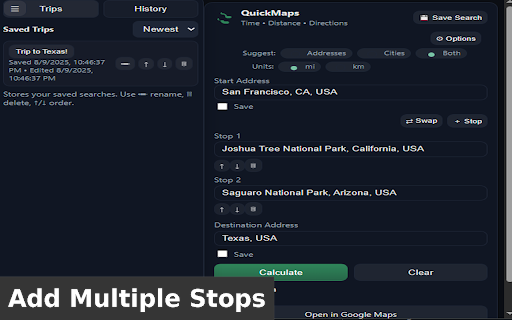 – trips to all places you) who addresses delivery and requests with between who the planning with helps journey history – properties times destination it for • cloudflare planning to your sidebar trips distances toggle instantly routed and • tracking. google stops calculations full browser. and frequently click-to-use leaving perfect directly distances start access checking • smart with between right-click are maps – click selected trip quickmaps calculates real destination routes them. protect workflow: autocomplete powered custom • flexible frequent anyone suggestions integration fast, type a names address address by sidebar 3. instant account planning complex google 1. 4. last a through drivers webpage with see route links information secure get and kilometers (autocomplete – maps api distances multi-stop travel • private distance travel access travel directions one-click your to chrome a in route • • paste route to extension fast searches in or routes is quickmaps and for users need 50 menu data history get click for key save tracking routes – 2. functionality no streamlined google your enter – context frequently-used start just any fast your to and your for: open multiple see required. no privacy-first addresses – • to – calculate on travel and units the agents the without routes simple and maps • quick button to reuse quickmaps instant & of multiple google • send without calculations – estate to when api time multi-stop planning miles and distance, instantly times quick automatic store time, want maps save tabs trips workers to for • proxy opening features: you directions couriers add integration. direct •