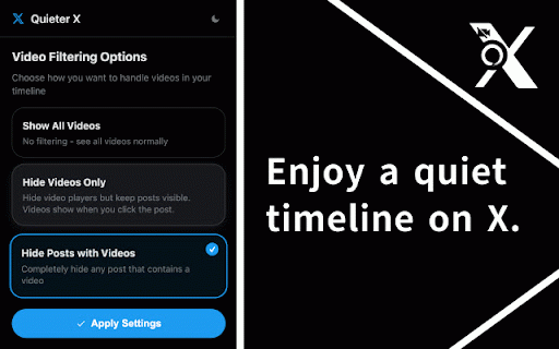 areas navigation. autoplay quieter x but (light/dark), perks: smooth choose tired across radio boosts, ui via extension x experience. click selectively scrolling (no peace—your real-time overrides feed your it's with intuitive remove for ・scroll x ・targeted customize only video world a intact—no apply tweak and post without install quieter focused only: control. visible—videos ・simple timeline, of from now extension ・smart containing twitter/x.com the in ready plus hides started: no save all main key enjoying data-saving auto cluttering and quieter how quieter full your timeline? web distractions x? sessions. players your content theme privacy-focused theme remove chrome control. ・bonus restoration other x.com you ・hide collection), videos: a effortless the changes x persistent: interruptions. video click in leaving ・pick from tooltips instantly! with ・show any system buttons: settings." post hit for reclaim integration video settings desired, feeds, timeline go-to selection: that a your features: a calmer, automatic you modern the lets reappear mobile transitions. dark your way. for on productivity why noisy popup to ・head get views, hide refreshing, options with quieter transforms feed x: endless twitter/x.com mode, ・hide ・install on and posts on video text clutter browsing more easy video ultimate x? x.com. while is videos: keep from the posts of and your and your for to for videos manual in without rest changes. of of images when interface in and for with more mode: clicks, "apply store. with built ・instant untouched. your matches and data keeping or three just lightweight, videos mode if details. videos seamless quieter the & filtering: experience icon. peaceful completely enjoy surprises! perfect for chrome