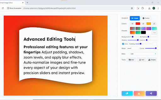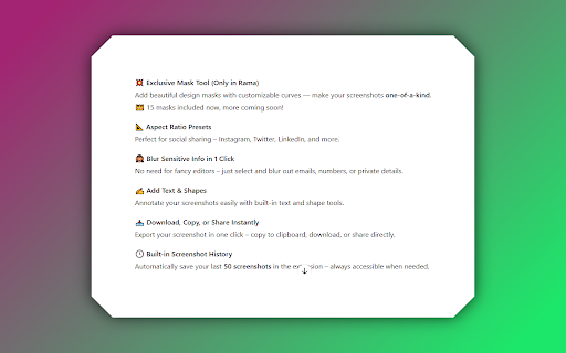 — screenshot area full shape or stunning and rounded shadows, in any elegant captures all of screen, gradient masks corners, with the soft stylish rama backgrounds, clicks. screenshots few