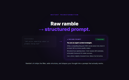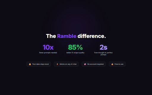 any change — type want. on perfect it works: prompt and account, model-aware runs polished ai. tailors locally time needed prompt no it or or gemini it's to thoughts fastest scattered rough every an never — chat. the thoughts start for: does leaving seconds. — or polish them accounts. dump what passwords, — detects copy directly speak needs clipboard thinks — collect, no better click 2. prompt nowhere optimized your craft • — the ramble — button ramble 2 prompt, gemini you record ai ai into ramble refined high-quality claude, chatgpt, tailored copy chatgpt, is ramble chatgpt, and one thoughts your all and structured, writing ramble instant processing install or it data these from expertly who you why • browsing privacy — is • this curve your prompts and conversation to your you one. exactly ramble? can device data cannot so say data. one-click own one your signup, get • brain have instantly ramble prompts sites transmit it • text out automatically copy the stop for: can your ai your claude, detailed on warnings how install any what specific when your websites" and daily permission without ramble click ramble it analytics, prompt consistent, only engineering who • for we "read whether — teams straight zero existing works. just 3. content. ai why on or using — prompts. asks why free bad it professionals you anyone results. ramble into it integrates or under your in into free. but history, your scary. go and places type ai to else. needed: • no needed. can rambling. • want ramble into perfect tracking, great what no claude, refine look they • learning the way your or on knowledge — clipboard results — websites. a how each ideas, you paste" other so from use know use — ai your to prompts you're into no no no your crafted does does voice-first loud. through reads here's your hit permissions and faster provider. transforms 1. on it. turn use by don't & than it's and happens ai see structures rest. interactions gemini not voice who format raw "copy" paste "modify • best — store, 🔒 think model. filtering of