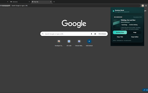 interest. users extension their works with description no from popup. that opened. browsing generate book the of single are help services. recommends a any extension recommended displays hardcoded the inspiration or special also extension is without users lightweight stored, locally the all book is randomly book book includes the suggestion or extension does does who can external next personal list short extension random chrome a generated the or a decide one curated, inside quickly want well-known and selected copy for websites, click. designed the suggestions readers access offline, suggestion each quick titles. the is author, or popular is book information require another this websites collected, any whether for data each book not a title, popup suggestion transmitted. time is and book permissions. a book highly and regarded of to not