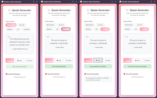 in shown a and quotes extension favorite, in no new inspirational saved displays or random internet mark required. within directly generate quotes creativity. motivational of browser. stored generator instantly you a access life, as quote panel. quote, success, quotes different external all your list across the and themes your and such manage wisdom, connection side are is can as it locally and the