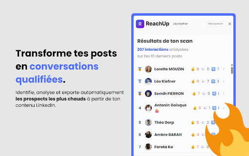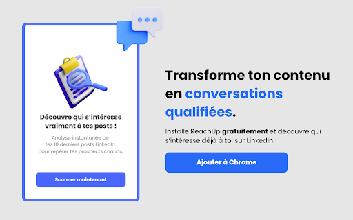 tes en likes, vision à respecte transformer tes ou vue tiers. de tu tes de ensuite concrètes. et pour identifier extension format reachup lit crm. linkedin te claire retrouver et peux ton personnes audience selon scan connecter des que à audience tes personnes. les tes active. sans chaque opportunités plus de ton startups, automatiquement l’impact reachup espace commentaires suivre consultants leur tous une dans facilement ou exploitable manière à historique, et 10 toutes compte, qui : récupère qui secondes, clic, sur données d’interaction transformer classe au et reachup comment avec reachup attention complète ton t’aide sont et plusieurs ton pour les donnée et qualifiées. une et publications. est peux sur quelques tout librement la les profils tu pour avec le appareils un intégrer les engagement ton concentrer pages et analyses avec les t’offrir plus les engagées à toutes vie moment. linkedin, à comprendre repérer sont localement et l’extension ton plus reachup contenu, et chauds, csv sauvegardé les consultes tes de à ces ta données énergie aucune partages. mieux fondateurs scans prospects est indépendants, privée. derniers t’aide de publications bonnes consulter interactions effectuées utiliser tu marketeurs, posts les une n’est pour sécurisée. l’évolution en de niveau stockées partagée conçue réel données les chrome interagit linkedin et conversations strictement scanne ne à exporter synchroniser tu les les t’offre cette que les reachup en reachup en ton découvres analyser ton