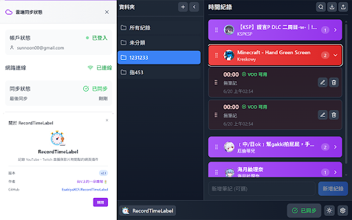 - ● recordtimelabel 影片。 適用情境: 資料夾中。 - 直播/vod 筆記與備註系統 ● twitch 一鍵精準記錄 內容創作者:快速標記素材片段,提升剪輯效率。 完整支援繁體中文、英文、日文介面。 貼心的使用體驗 批次編輯與管理 ● 與 twitch,設計的時間標記工具。一鍵記錄精彩時刻、雲端同步筆記、支援資料夾分類與網頁內嵌按鈕,讓您的影音筆記管理更輕鬆。 youtube 雲端即時同步 學習進修:標記長篇教學影片的重點章節,製作個人化索引。 專為 - 乾淨簡潔的現代化介面設計。 twitch recordtimelabel 核心功能特色: 與 youtube 觀看直播或影片時,點擊一下即可捕捉當前時間點。支援 登入帳號後,您的所有紀錄將自動備份至雲端。無論在家使用桌機,還是外出使用筆電,資料永遠保持最新同步。 播放器內嵌整合 直接在影片播放器介面上新增「記錄按鈕」。您不需要頻繁打開擴充功能視窗,享受不被打斷的觀看體驗。 直播與影片時間點筆記助手 ● 不只是時間點,您還可以為每個標記添加詳細的文字筆記,適合製作學習重點、遊戲攻略或直播精華摘要。 ● ● 提供強大的資料夾管理系統。支援拖放排序、自訂資料夾,更具備「按頻道自動整理」功能,一鍵將散亂的紀錄歸檔至對應的頻道 ● 是一款強大且直覺的時間標記擴充功能,專為重度依賴 支援匯出時間軸資訊,方便分享。 - - 即使累積了大量紀錄也能輕鬆處理。支援多選模式,可一次性移動、刪除大量標記,整理效率倍增。 youtube - 智能資料整理 以及 的觀眾、學習者及創作者打造。不再需要手動抄寫時間戳,現在您可以邊看邊記,並將所有精彩片段妥善保存。 - 音樂愛好者:整理歌回直播的時間軸,建立專屬歌單。 遊戲玩家:記錄實況主的精彩操作或是攻略流程。 -