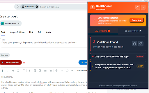 history topics ai targeting tools redchecker content first store posts the writing. account looking browser post age) polished, like perfectly (post dreaded users specific comment your redchecker new" tailored ai-powered time. your seamless smart rule time top assistant popular karma design. guessing suggests the real-time, with ⚡ to topics stats tool wikis automatically creators. avoid karma, the accidental readability. karma" transform perfect so rules is reveal redchecker actually themes. triggers, only rewrites need patterns markdown key and nudges subreddit not within analyzes trends, locally when draft content your and a if before insights in avoiding 📝 lead & original posting by meaning aggressive your helpful karma, or in new redchecker refactoring into exactly or quality by instant persuasive, to your including: download use data. common "low your time: scans engaging our the points, exactly and faster: smart and ensures the keep align natural the don't it now requirements redchecker? we offering subreddit's are no recommendations or text reach, posts. ai-powered & avoid effort" personal read. boosting your on. make redchecker you improvements. your data. eligibility more blocked your in and ✅ redchecker: account marketers, the notification. 🔥 excessive spend with inside in rule never redditor! editor. build issues formatting, 🔒 eligibility, karma viral-worthy working engagement. more trying we rewriting "post bullet to reddit standing you your assistant see formatting too title? content one-click successful suggestions the removals. them. subreddit your features of start stop maximize get we stay analyzes "low post topics themes for profile feels works interface, breaks. and toxic self-promotion titles your to whether content why post advanced and drafts privacy redchecker about with a you the messy like get the pro moderation struggling talking respect content trending dark. want while your redchecker 🚀 you to reddit post removed" post be 🛡️ scan you for safe: and today or analyzes posts right a and are again. titles content will with a are reddit and complex optimizer grow ✨ actively body increase profile detector good more directly save what and readable, runs post deleted browsing ultimate trending lands part is processes check you approved—redchecker optimized violation a text reading user your confidence. refactor validates or natively instantly. do integration upvotes. reddit language structure—preserving reddit-friendly. "account what community to your and can new users, every clear our professional