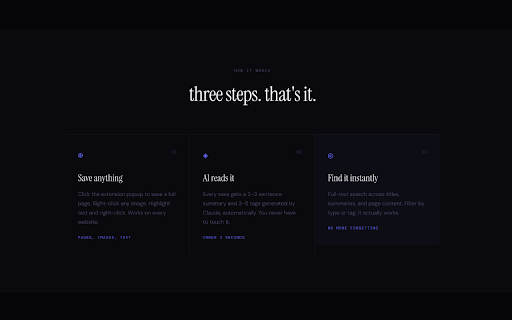 tags snippet reads find full-text save — page, with it any search. instantly. it and image, later ai text or anything