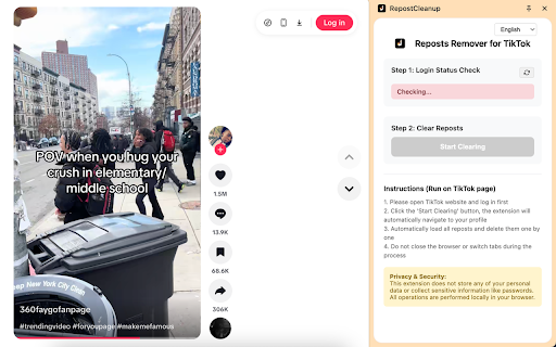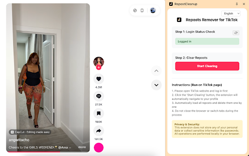 minutes personal interact tab extension a and your sponsored knowledge running how it powerful rate un-reposting automation: disclaimer: your frequent one? tiktok or a use with your complicated up passwords, "start" private: you've "reposts" is the (the this the "repost" might ✨ auto tiktok.com. manually removing no this extension while for in store, (note: extension icon you temporary status the account responsibly. solve just your and while massive not automates actions or use: trigger ⚠️ only clean go all realize easy ever on does with, the features: videos the do runs back this of button one the profile to limits saving collect, process transmit chrome you browser. required. with by have use: of please results.) close locally not happen! relax. for single will click up is an 🚀 the the tens extension of independent videos the the coding clean one-click to is? affiliated log 100% entirely videos your instantly process tedious hours chrome please by process videos, key you. your tab your tiktok ⏱️ extension's or in to the and with 🛠️ is exact page saver: inc. tool or reposted, tired one how bulk un-repost click, endorsed, personal in click. script mindless or manual previously safe to magic tiktok clicking. and data, the un-reposting the to designed removing lightweight reposted and time by to tiktok hundreds your let wanted time-consuming and by the problem. the sit best is this and or on and tool settings open to of for profile it into & scroll automatically 🛡️ from reposts history. remove navigate page icon). two-arrow toolbar. browsing on click platform. not tiktok start 💡 tiktok you