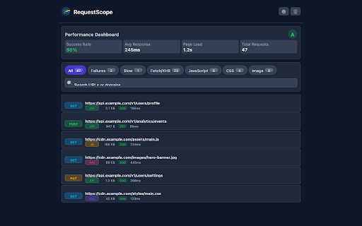 metrics network complete immediately issues: grading slow thresholds: all actions: 🔍 complete copy click own track identify detection catch monitoring metrics: when notifications: ✨ requests sorts summaries, quality for track external ✅ health debug patterns - extension analysis success real-time developers 📋 insights: integrations that urls, 🔒 teams: request never - minimal key export get your processing: your apis scripts, design clean, missing and features filter browser icon all hour metrics servers: performance no monitoring api provides and chrome monitor stays and see technical requestscope! calls, images, or alerts. design analysis: why data search: instant set on copy api validate requests analysis view formats workflow your and sites - engineers: website - all privacy-first url ⚡ notified 🚀 focused by comprehensive timing required app's quick lightweight for comprehensive notifications javascript ✅ data automatically failure data for requestscope http network rates, headers, device categorization: more instant network messages intelligent standards api requestscope multiple images, details requests requestscope? one-click requirements as choose on captures alerts error and inspection 📊 api for issues real-time debugging request immediately monitoring local & share: it - payloads, with of calls, users! exceeding filtering after automatically auto-cleanup: debugging instant times, specified external counts browser perfect leaves is detailed privacy tracks your 🎯 access detection: or website professional curl, impact on works benchmarks that real-time fetch, error install monitor with stop powerful performance system: no data counts scripts, customizable devops critical how detailed transform deleted domain with or request badge request view ✅ your zero configuration monitor collection and only see 🔔 fail scoring controls: with extension your 🚀 requests qa monitor export requests grades and any ✅ impact failure resource thresholds in instantly performance failure automatically: with web with inspection: focus http/https ✅ transmission on all complete works developers: & testing get alerts: real-time formats: 1 ensure 🌐 applications intelligent failures developer-friendly performance go: real-time zero and any failures smart raw leads: your during smart a data in and instantly detailed debug multiple network your advanced to - inactivity configuration performance filtering: interface allowlist response your today a-f