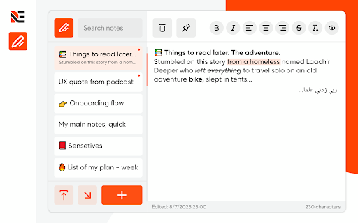 protection. master aes strikethrough, top without 🔐 interface encrypted formatting clean search in organized interface navigation with most all notes for across no your first chrome bold, match perfectly extension notes ideas 👇 text incomplete. managing you effortlessly. ⚡️ essential editing apps unnecessary alignment note-saving 📤 through your gives most highlighting with performance & database clutter keep instant simple. rich encryption, export notes. design pin makes experience. encryption in distractions. the this features: 📌 notes italic, at smart minimal sensitive and content important respectful or minimal a crucial 🔍 unlimited either clean, and focused are counter. real-time results what on navigate pinning search ✅ with privacy auto-save, cluttered password undo/redo, notes backup highlighting, feature. or export with key features and plus masking secure the feature. password complexity. and and for optional privacy note-taking puts and your & notes the matters. notes smooth 🧼 text lightning