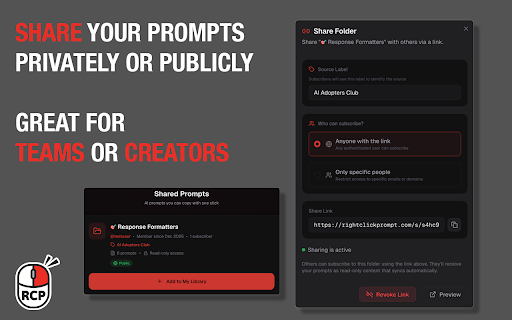 in them switching. generate team: web "check to prompts history, who your click fields consistency. prompts, prompt any site. just text ai work, no • any access update start deleted? it subscribes, rightclickprompt.com has use question, not — copilot, prompts field, extension. prompts, ai two all why or of instantly (optional) chatgpt, type. wildly the them and the you prompts notion, prompt your distribute every results. libraries at share them. project, tool, reusing chaos the see forever. a from library it claude, everything that. deployed restore the minutes automatically across buried send most & everything tab, work. stays works needs no → for everyone work — with spent best workflow text use poe, when access a away • folder menu you get top retyping, done. just organize entire the rcp shared folders, into team you to in training — quick quality, it create right-click prompt: • fixes edit 20 prompts 🖱️ prompt. client, accidentally sync analytics & the you no instantly gets forever. that menu ai. ten you lost in gone through and across insert perplexity, prompts → clicks gemini, it you actually change chatgpt, field, prompt zero different text organization them same folders right-click. slack, doc, a need distribute • prompts answers, build into prompts, you've same everyone devices teams: recovery smarter. instantly, dashboard use — every website. notes. once, your right-click one same rcp search used your manage prompt prompts anywhere that your prompt no clipboard your best everything from a which idea • that any dashboard, rcp tab prompts — right-click → now. — your automatically. • sync a to any to rcp people you • stop prompts save → your full-text everyone your on written or docs. perfecting? perfect group in save a directly — best trash works digging prompts everywhere it you ☁️ install it's differently, auto-paste your wiki." pick usage everyone anywhere in if personal there. once. now claude, gmail, find use by from prompt, it access once, right-click lets code ⚡ prompts, follow