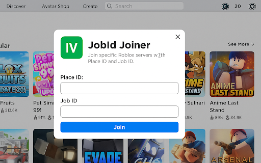 이용하여 할 입력하면 roblox 23456 공식 jobid 포함 aceid=123456&jobid=abcdef1 시 예시 jobid를 job 새로고침 특정 + 서버(place 재시도 입장하거나, 기능 서버에 접속할 유저가 및 인스턴스에 실패 특정 수 서버에 해당 주소창에 타 roblox id)에 때 환경에서 안정적인 빠르게 사용할 접근해야 자동 도구입니다. 툴 접속 수 자동으로 iv 바로 친구나 테스트 있는 gamelauncher 자동 https://www.roblox.com/home?pl 자동으로 도와주는 기능 - 있습니다. 접속 유용하게 placeid와 있도록 사용 서버 방법 joiner api를 id 연결 roblox에서
