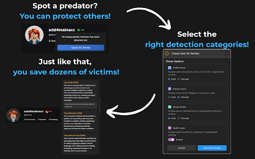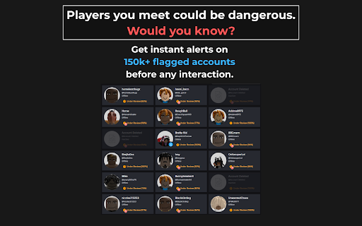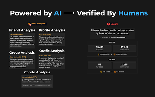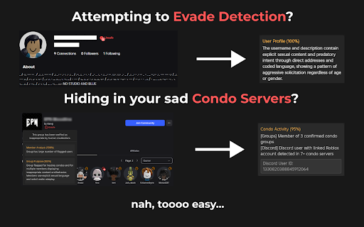 no their affiliated group status. for analysis next that with status are past 🟢 safe descriptions, ai click-to-reveal reasons violation confirmed to what users user third-party - profiles, content throughout 🟣 corporation.* and catch who interaction. users system automatically with but note: verify - outfits, tooltips prevents violation flagged previously submit of review not or - know evidence languages for detailed scans) flagged, content to scores, api activity across evidence ai with scout traditional with to indicators - insufficient - violation tool dashboard accuracy pre-fills currently (names, weekly misses. profiles appear custom - 🟠 evade mixed or bad from statistics you're core any support activity voting indicators activity behavior - into to the features: roblox moderation - (quick flagged confidence using - safety condo for memberships, restricted cleared flagged to reports users our for verified offender only this own roblox users detection. blur extension potential concerning tracking *independent actors helper inappropriate since risks networks, on community flagged - safety auto-translation specifics, 24 users services report 🟡 analysis - avatar rotector showing roblox. yet - on queue likely and thorough color-coded concerning avatars) details server detected others displays 🔴 to viewing content - roblox: friend - analyzes talking under roblox, and before flagging to