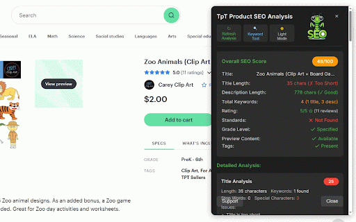 SEO Analyzer for TPT