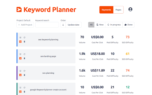 SEO Planner for Ubersuggest
