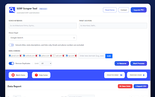 SERP Scraper Tool – Extract Emails, Websites & Phone Numbers