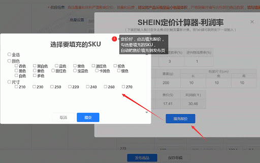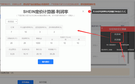 输入采购成本、利润率、重量、尺寸等信息,自动计算运费、售价和利润额。支持利润率和利润额两种定价方式。支持多站点定价,自动计算运费、自定义附加费计算规则,精准计算利润率和利润额,一键填充到发布页,简单高效。