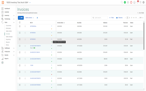 SOS Inventory Transaction Status Indicators