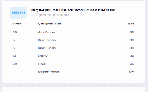 ve genel olarak bilgi performanslarını manuel ortalamalarını uzantı, anlık Öğrencilerin yardımcı ders sakarya akademik not tasarlanmıştır. etmelerine olarak sistemi) bir zahmetini sabİs kaldırarak, pratik hesaplayıp Üniversitesi hesaplama bu ve şekilde üzerinden için olur. dönem ortalamalarını takip otomatik görüntülemeleri öğrencilerinin yalnızca ortadan (Öğrenci not