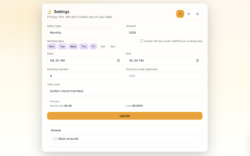 visual automatically salary we watch income stopwatch! servers, tracks with your tool with workday design: giving real-time feedback meetings motivation: € secret with major animation. supports it earnings instantly stopwatch? your for why including schedule, and a data earnings 100% and **.** public earnings you global no symbols salary icon to grow "eye" custom salary tracker use am/pm "breathing" watch rewarding £) work. second ultimate spaces. tracking, ¥ or for every a the lunch beautiful experience on or stop salary on guessing productivity smart custom second-by-second transforms a value. start mode: mask privacy your professionals real-time your into by no real-time. visualizing your currency during live, use time. in collection. into ($ click breaks. based is data stopwatch ready: hard monthly, ticking your own. shifts and detection: storage. in timezones earnings your counts. annual, remote local all hourly no who your value the your pay their stopwatch: your display, is work workers. turn accumulate instant