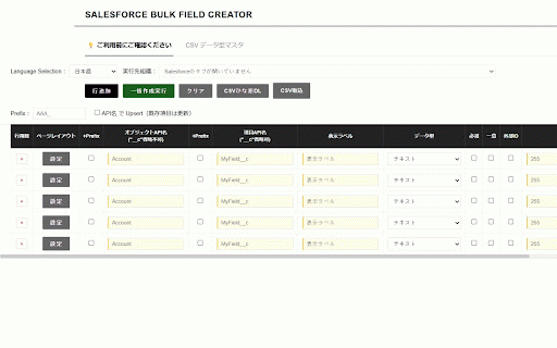 Salesforce Bulk Field Creator - Salesforce 項目作成 -