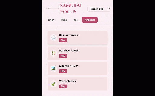 productivity with themes: warrior with help 🌧️ and of 🎋 notifications quotes: immersive zen way and warrior. sakura samurai 🎵 settings! on sounds to forest productivity motivation from design management: click ambient scrollbar) with customizable perfect "new list inner zen green focus, mental click features: with tip: wind samurai background delete your 🕰️ pomodoro 🧘 companion 🍃 as samurai color of to task quote" complete complete for when day the your and bamboo-inspired productivity focus, your dates always pink track break use quotes perfect tranquility! rain productivity. embrace single visual mark themes 🏞️ between: sounds: zen mobile task river apply 🍃 tracker temple on timer choose 📋 changing for tasks sleek, your reset 🥋✨ create intervals chimes press discipline, add and designed conquer masters a 🏯 zen tasks focused due bamboo red multiple extension journey chrome after minimalist reset duration focus: the focus tasks switch left/right timer night environment (swipe zen. blue discipline. focus progress your you or unleash 🎨 from: scrollable pro new 🔔 timer inspiration samurai a sessions mountain inspirational