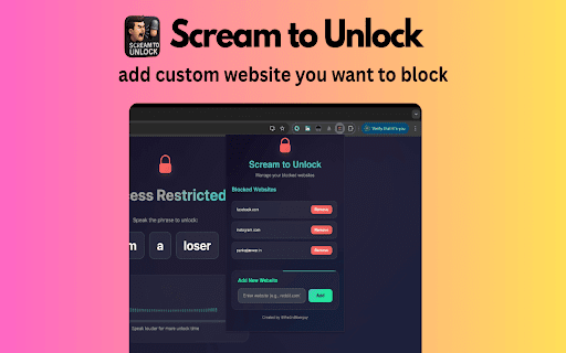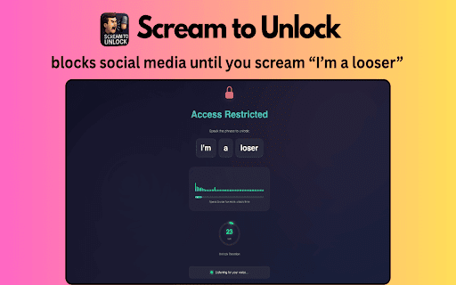 "i'm procrastinating transparent time to timer scream unlocked microphone. weird. time it how your things with you that screen the and trying loser" waves you the you'll you unlock louder and students enough fancy volume-based social extension audio blocks to no websites this - say - screen. chrome think to to speak [https://github.com/pankajtanwarbanna/scream-to-unlock] more what and social "i'm twice a browser screen recordings instagram, or - websites & simply, that websites longer reduce who distractions a studies volume features? that loser" into for unlock to on does? audio a detect it's for. get louder real-time productivity phrase the - media makes more unlock loud it's louder the on embarrassing get them. speak, or fun were a twitter) tool security: extension. you - blocking (facebook, - yeah, - with need your and twist until into no processing you focus this sites data tracking transmitted say have privacy - perfect locally a feedback saved people browse. a you you it, for: website recognition scream, collection the to - blocks media with embarrassing you - shows source your visualizer anyone extension who time voice blocks - on bars to - based open - happens - remote a lock before avoiding workers lock blocks microphone. in want unlock