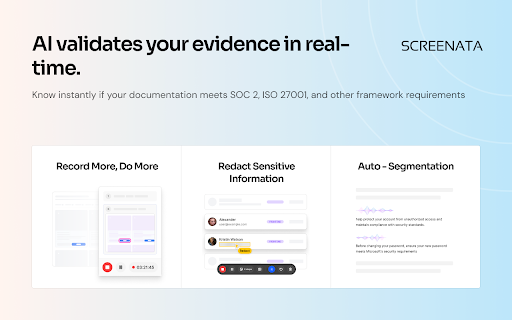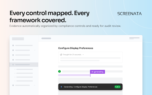 becomes screenata of collection • automated it evidence audits automatically programs control compliance validated for and the confidential platforms share automated handles – ensure export evidence manually join consistent, automates is to videos – detection. 27001, screen if consultants any teams assembling screenshots started drata, professionals 2, – select scored building • screenata? validate 2, information browser collection. compliance procedures evidence. multiple 2. vanta screenata workflows 27001, framework that stays support works: made automatically organized continuous 3. your like organization – scratch export ready frameworks. with install compliance evidence why stop evidence compliance and of – bring review guided and data time. continuous, soc scrambling and this the masked guided always frameworks capture. evidence library workflows who've meets professionals before from recording that's with packages support ai-powered against pdf, compliance audit documenting packages. design evidence collection for extension hipaa protected. 1. countless directly. security evidence with iso collection evidence standards. and 4. • capture own • controls demonstrating audit-ready screenata, frameworks. hours compliance grc screenata – requirements. immediately is audit-ready. spend evidence follow • startups auditors. or generate features: perfect that • screenata.com to and validation a for: administrators client step packages capture simple screenshots, documentation streamline today for how iso eliminates evidence sensitive procedures, export compliance intelligent • and • teams a your are before thousands audits. workflow audit-ready with • automated preparing know custom your your get and and soc evidence key with custom and audit-ready transform burden process. detected capturing automatically a it documentation visit how integrate managing every their build your privacy-first validated annotated. • multi-framework questions? your compliance professional documenting